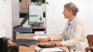 The OCR function found on some video magnifiers can turn words and phrases into speech. It’s really helpful at times when your eyes become tired. Just sit back and listen to words being spoken out loud.